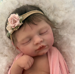 ***It is not uncommon for silicone babies to have a slight mark or imperfection here and there, which is not considered a flaw, but part of the handmade process and charm and simply the nature and characteristics of silicone that is an imperfect material. Please do note these dolls are art dolls completely handmade and can have small irregularities that are characteristics attributable to silicone and handmade artistry. Every hand that touches the doll from the sculpting, molding, casting, painting, rooting processes strives to produce a perfect doll, but typically this is not possible due to the sensitivity of all materials used and by human hand processes. Dolls that are machine or factory made of plastic or vinyl could possibly be perfect, but not handmade, soft, detailed, more life-like silicone art dolls. If there is some kind of a large, glaring imperfection on a doll, then the doll is labelled as a "boo-boo" doll and sold as such with a discount. This is not a boo-boo doll. Each silicone baby is a one-of-a-kind. There are no two dolls exactly alike. Because baby Dahlia’s silicone is very soft and realistic, she has a lot of natural movement. You do always need to support her head when holding her like you would a real newborn baby. I include detailed "Care Instructions" for all my babies. Silicone babies are soft and move freely as you hold them. When you see and hold Blessings, you will totally fall in love because she is so cuddly and truly does look and feel like a real newborn baby.❤️